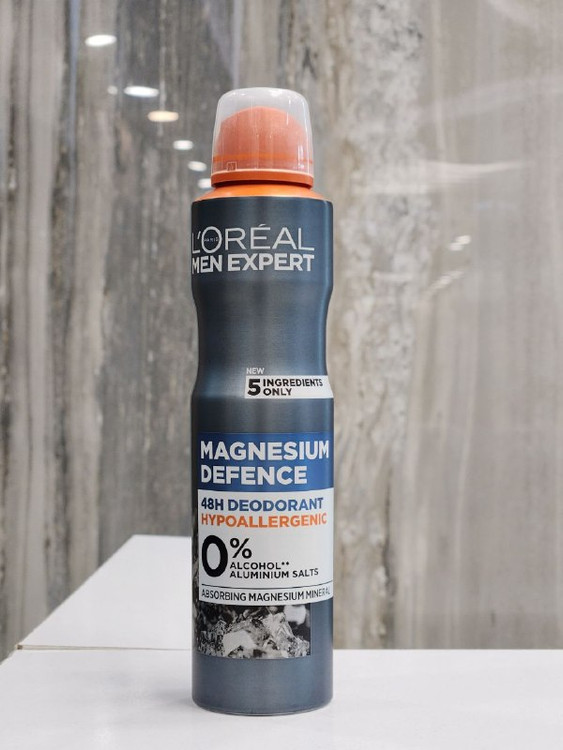 اسپری بدن مردانه لورآل Magnesium Defence، محصولی از برند معتبر لورآل پاریس است که با بهرهگیری از فرمولاسیون پیشرفته و ترکیبات منتخب، به آقایان کمک میکند تا در طول روز از تعریق و بوی نامطبوع به شکل موثری محافظت شوند. این اسپری (که در برخی متون به عنوان منیزیوم دیفنس نیز یاد میشود) فاقد الکل و نمک آلومینیوم بوده و به دلیل ویژگیهای ضد حساسیت، برای انواع پوست، از جمله پوستهای حساس، مناسب است.