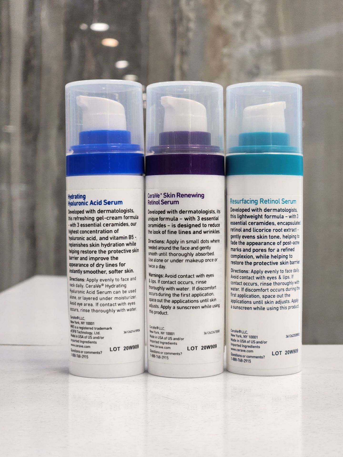 سرم رتینول ضد چروک سراوی CeraVe Skin Renewing رفع چین و چروک تقویت سد دفاعی پوست کاهش علائم قابل مشاهده پیری حاوی هیالورونیک اسید برای آبرسانی و حفظ رطوبت پوست قابل استفاده به عنوان زیر ساز آرایش مناسب انواع پوست حجم : 30 میلی لیتر سرم رتینول سراوی CeraVe حجم 30 میل CeraVe Resurfacing Retinol Serum حاوی 0.3 درصد رتینول کپسوله شده حاوی نیاسینامید دارای 3 نوع سرامید ضروری ضد لک ضد آکنه روشن کننده آبرسان 24 ساعته مناسب انواع پوست فاقد چربی بافت سبک و زود جذب فاقد عطر و مواد حساسیتزا حجم : 30 میلی لیتر سرم آبرسان هیالورونیک اسید سراوی CeraVe حجم 30 میل CeraVe Hydrating Hyaluronic Acid Serum آبرسان عمیق حاوی هیالورونیک اسید، سرامیدها، ویتامین B5 تکنولوژی : MVE برای رطوبت رسانی مداوم ماندگاری 24 ساعته صاف و نرم کننده پوست بدون پارابن و عطر فرموله شده توسط متخصصان پوست مناسب انواع پوست (خشک، چرب، مختلط، حساس) حجم : 30 میلی لیتر