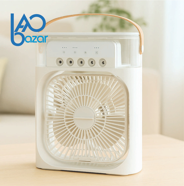 پنکه مه پاش رومیزی مدل Air Cooler Fan فاقد باتری است و به صورت مستقیم توسط آداپتور و کابل USB Type C به برق متصل میشود. دارای پنج نازل مه پاش قوی و قابلیت تنظیم تعداد مه پاش ها است. دارای پد خوشبو کننده و تایمر جهت خاموشی خودکار می باشد. فن دستگاه قابلیت تنظیم دستی و چرخش 360 درجه در یک جهت را دارد و محافظ فن دارای قابلیت باز و بسته شدن جهت نظافت پره ها میباشد. ترجیحا از آب تصفیه شده درون دستگاه استفاده شود جهت جلوگیری از رسوب.