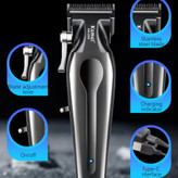 جنس تیغ استیل ضد زنگ دارای استند شارژر مدت زمان شارژ دستگاه 3.5 ساعت مدت زمان قابل استفاده از دستگاه پس از هر بار شارژ350 دقیقه باتری 2500 میلی آمپر دارای نمایشگر نشان دهنده وضعیت شارژ دارای 8 عدد شانه اصلاح