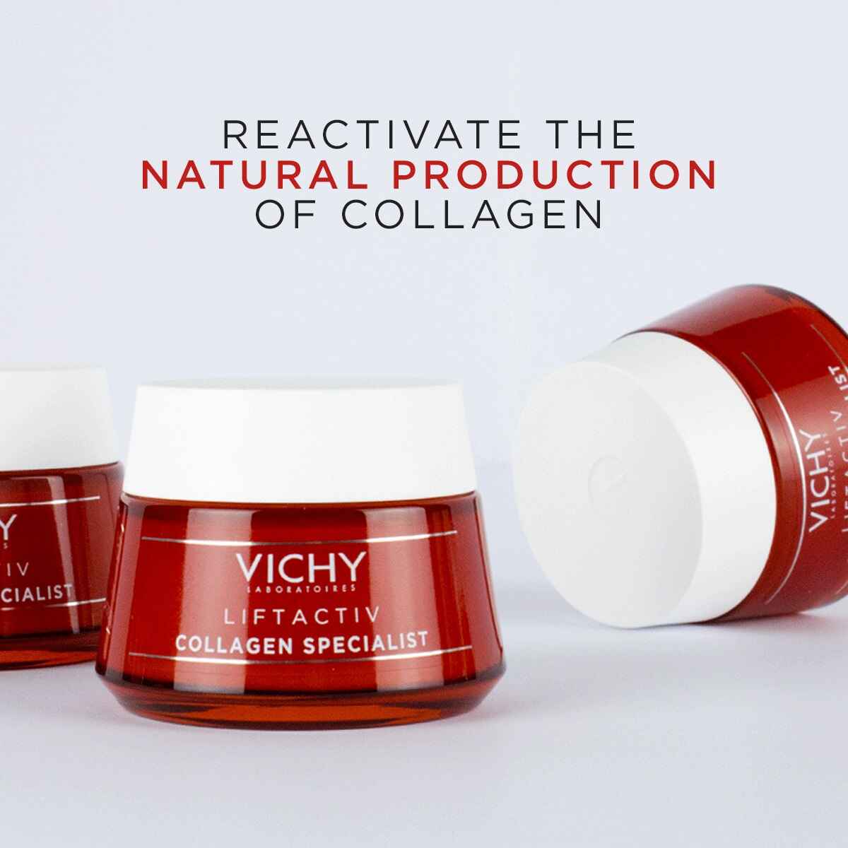 کرم روز کلاژن ساز ضد چروک و سفت کننده لیفت اکتیو ویشی محصول کشور فرانسه می باشد. این کرم انواع کلاژن را تقویت کرده و علامت های پیری مانند چین و چروک، خطوط ریز و افتادگی پوست را اصلاح می کند. همچنین این محصول پوست را درخشان کرده و رنگدانه های پوستی را کاهش می دهد. ویتامین C موجود در این کرم از پوست در برابر رادیکال های آزاد محافظت کرده و پوست مرده را بازسازی می کند.
