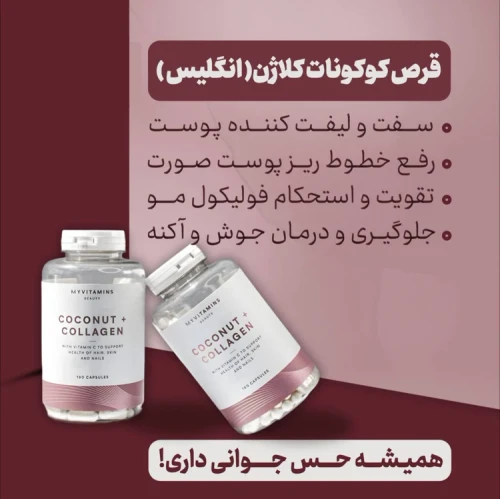 کپسول کوکونات کلاژن مراقبت از پوست،مو و ناخن مای ویتامینز 180 عددی